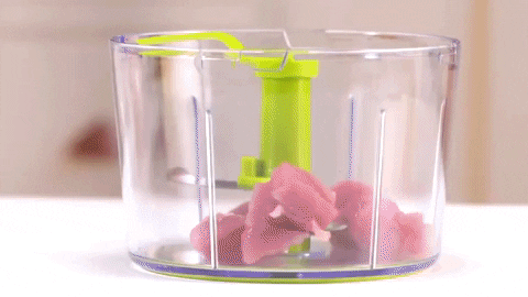 Áramforrás nélkül használható kézi zöldség-gyümölcs aprítógép.