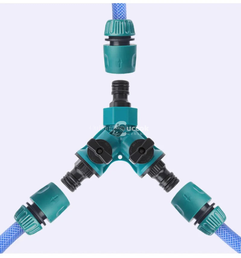 (Funkcionalitás) Kétirányú elosztás: Az elosztó lehetővé teszi, hogy két különböző területet öntözz egyszerre, így hatékonyabbá teszi a kerti munkát.