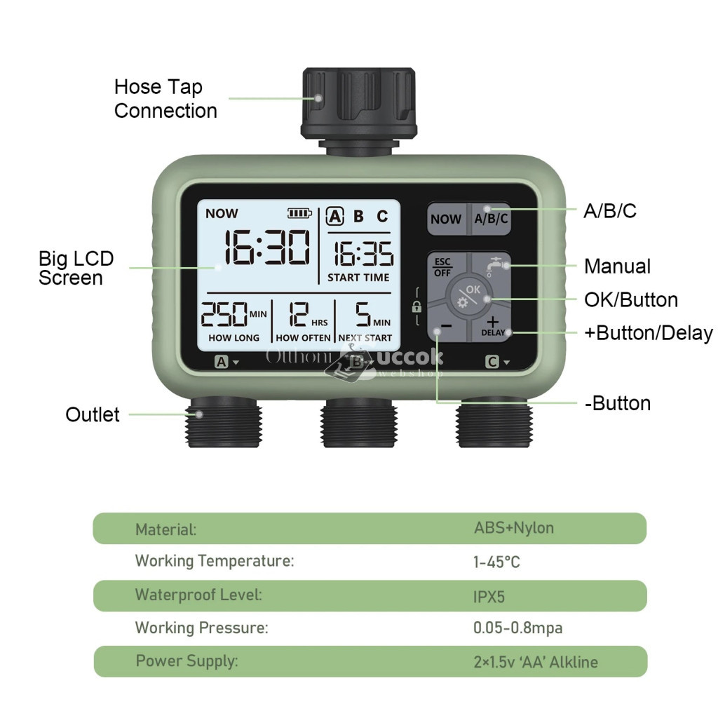 A modern dizájn és a könnyű kezelhetőség teszi ezt a vízidőzítőt minden kertész álom eszközévé. Akár kezdő, akár tapasztalt kertész vagy, ez a készülék megkönnyíti a mindennapjaidat. Az intuitív kezelőfelület lehetővé teszi, hogy egyszerűen beállítsd a locsolási időket és időtartamokat, így biztosítva, hogy a növényeid mindig a legjobb gondoskodást kapják.