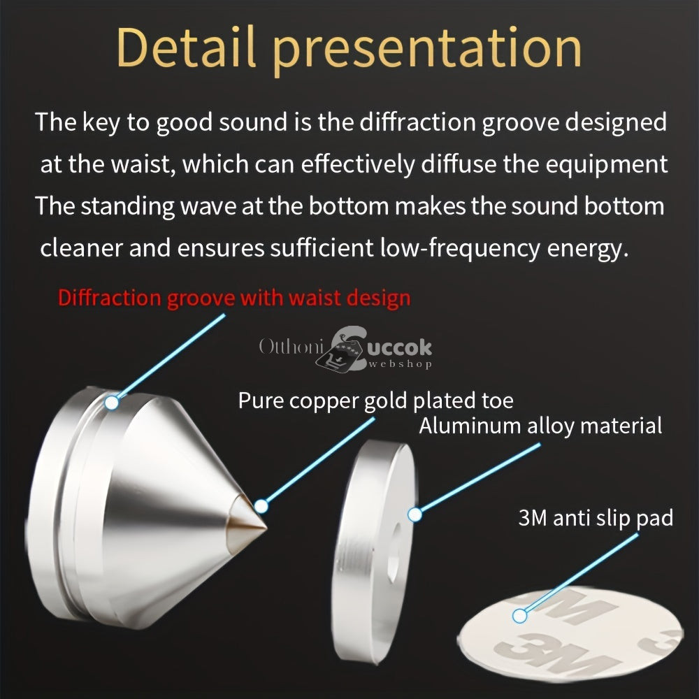 (Prémium minőség) A készlet anyaghasználata révén hosszú távra szóló befektetés a hangzás szerelmeseinek. A réz és alumínium kombinációja nemcsak tartósságot, hanem eleganciát is sugall, így minden hangfal szett méltó kiegészítője lehet. Ezek a tüskék nemcsak a hangzás javítására alkalmasak, hanem a hangfalak stabilitását is növelik, így biztosítva a zavartalan zenehallgatást.