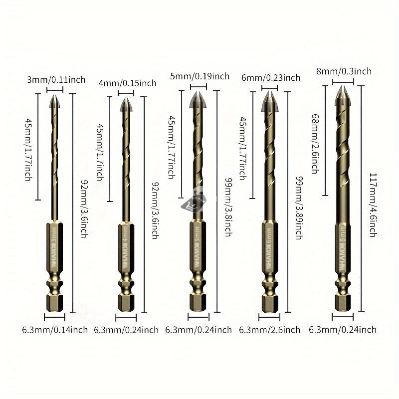 5db 3-12mm Kereszt Hex Csempefúró Szárny