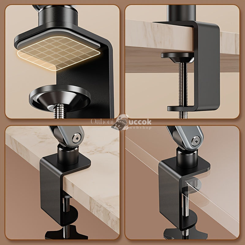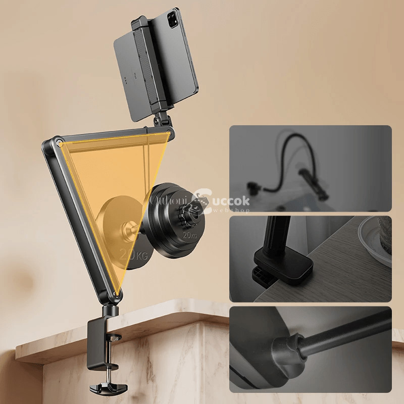 (Stabilitás) A csúszásmentes talpak biztosítják, hogy a tartó mindig a helyén maradjon, még akkor is, ha az asztal felülete nem teljesen egyenletes.