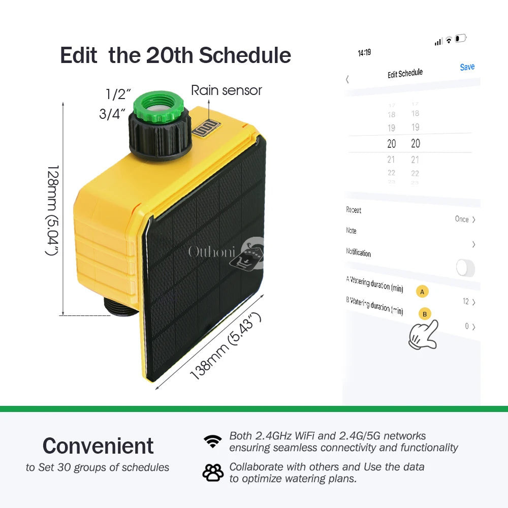 (Intelligens vezérlés) Az öntöző időzítő nemcsak hatékony, de stílusos is. Kompakt kialakítása révén könnyen beilleszthető bármelyik kertbe, és a napenergia használatával a fenntarthatóságot is támogatja. Az eszköz okos funkciói révén személyre szabhatod az öntözési időszakokat, így a növényeid mindig megkapják a szükséges gondoskodást. Fedezd fel, hogyan teheted egyszerűbbé és zöldebbé a kerted gondozását ezzel az innovatív megoldással!
