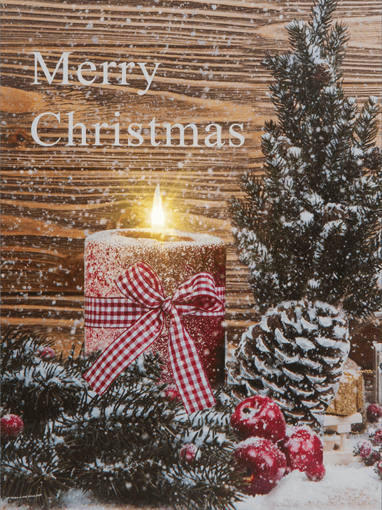 A fali képen gyönyörű esztétikába öltöztetett karácsonyi mintázat látható, de ez nem minden! A termék LED-el lett ellátva, amely tovább fokozza fényes melegfehér fényével a hangulatát. A kütyü elemmel működik, amely nem része a csomagnak. LED fényének köszönhetően a kép nem használ fel sok energiát, hosszú élettartamot kölcsönöz számára. Applikálására a hátoldalán egy akasztólyuk lett kialakítva.
