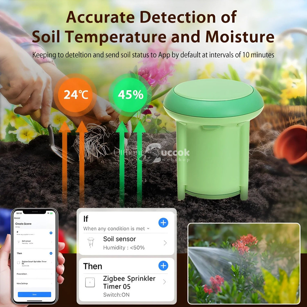 (Hőmérséklet mérés) A talajérzékelő folyamatosan monitorozza a talaj hőmérsékletét, így biztosítva, hogy a növényeid mindig a legoptimálisabb körülmények között növekedjenek.
