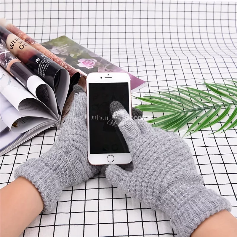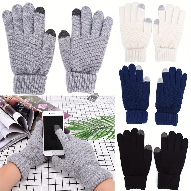 Kötött Érintőképernyős Kesztyűk Telefonhasználathoz, Fehér Színben (1 pár)
