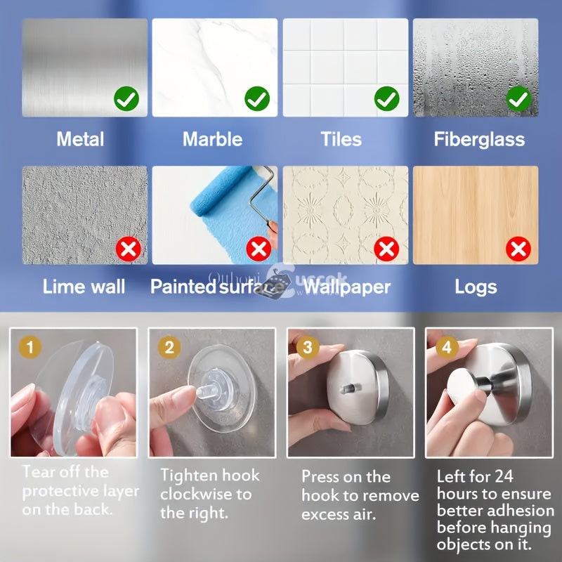 (Könnyű telepítés) A szívókorongos technológia lehetővé teszi, hogy az akasztókat gyorsan és egyszerűen felhelyezd bármilyen sima felületre, fúrás nélkül.