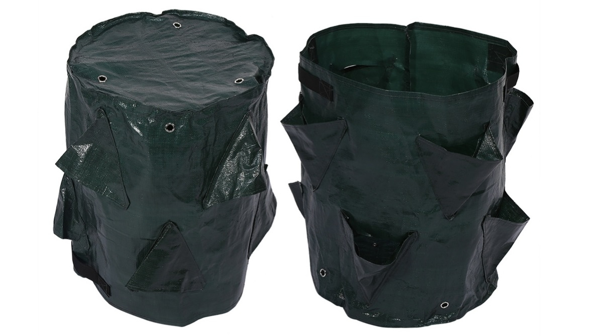 A növénytermesztő zsák környezetbarát anyagból készült, emellett pedig vízálló, sőt, hideg- és melegálló is. Az oldalán nyolc zsebet találsz, amiknek alján egy-egy lyuk van, amelyek még hatékonyabbá teszik az ültetést.